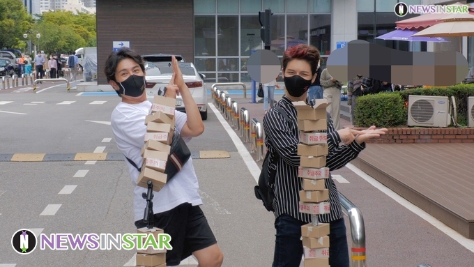 [뉴스인스타 양철수기자] 9월 28일(화) 오후, 서울시 영등포구 여의도동 KBS 공개홀에서 진행되는 ‘유희열의 스케치북’ 녹화에 참석하기 위해 그룹 노라조 조빈, 원흠이 방송국에 도착해 포즈를 취하고 있다.