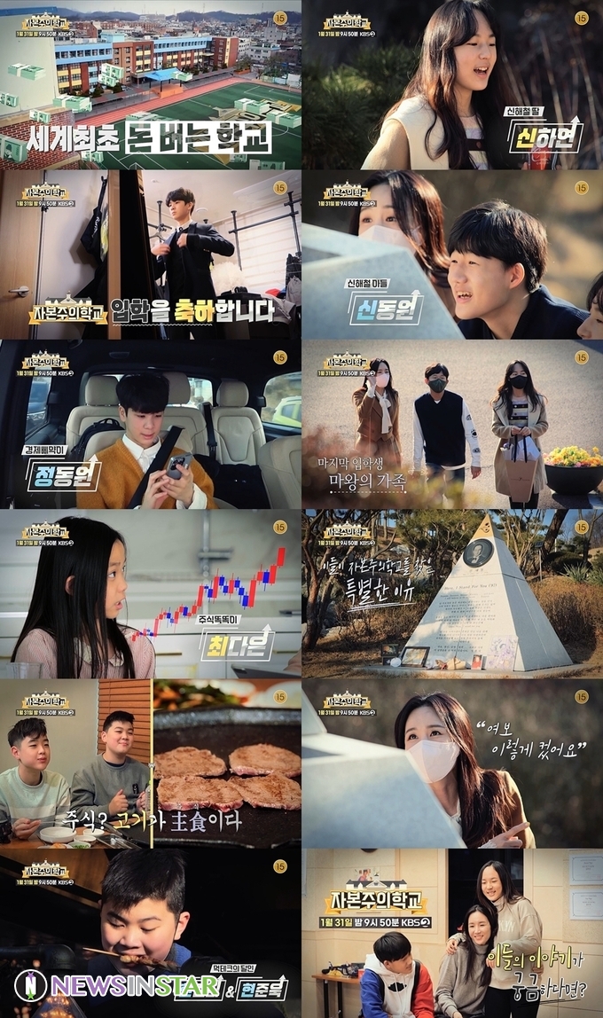 KBS 2TV ‘자본주의학교’는 경제 교육이 필수인 시대, 10대들의 기상천외한 경제생활을 관찰하고 자본주의 생존법을 알려주며 이를 통해 발생한 수익금을 기부하는 과정까지 담는 신개념 경제 관찰 예능이다. 1월 31일 월요일 밤 9시 50분, 2월 1일 화요일 밤 8시 10분 2회에 걸쳐 방송되며 2022년 설 연휴를 풍성한 재미와 유용한 정보로 가득 채울 전망이다.