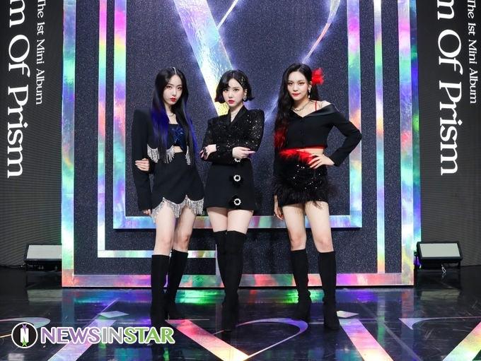 [뉴스인스타 양철수기자] 2월 9일(수) 오후, 걸그룹 '비비지(VIVIZ)'의 데뷔 앨범 '빔 오브 프리즘(Beam Of Prism)'의 온라인 쇼케이스가 열려 은하, 신비, 엄지가 포토타임을 갖고 있다.