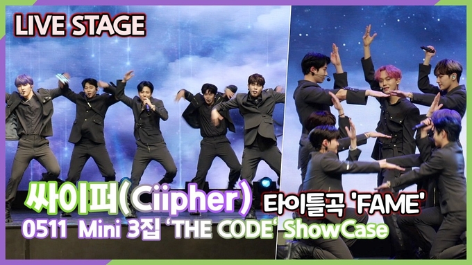 [뉴스인스타 양철수기자] 5월 11일(수) 오후, 서울시 중구 장충동 크레스트72에서 진행되는 그룹 싸이퍼(Ciipher) 미니 3집 'The CODE' 발매 기념 쇼케이스가 열려 싸이퍼 현빈, 탄, 휘, 케이타, 태그, 도환, 원이 참석해 타이틀곡 'Fame' 첫 무대를 선보이고 있다.