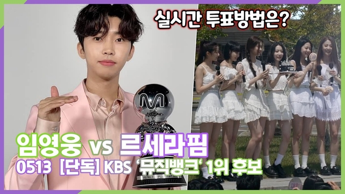 [뉴스인스타 양철수기자] 5월 13일(금) 오후, 서울시 영등포구 여의도 KBS 신관 공개홀에서 진행되는 KBS 예능 '뮤직뱅크' 생방송 1위 후보로 임영웅, 르세라핌이 올랐다. 방송 중 실시간 투표는 없습니다. (음성 - 클로바 더빙)