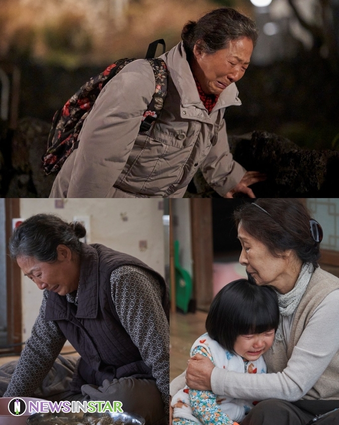 공개된 스틸컷 속 하나 남은 아들마저 잃을 위기에 처한 현춘희는 참담함에 휩싸인 모습으로 눈길을 끈다. 늘 마을 사람들의 든든한 중심이 되어줬던 현춘희가 이렇게 무너져 내린 모습은 처음. 이를 앙다물고 슬픔을 억누르려 하지만 잘되지 않는 듯 눈물을 흘리는 현춘희의 모습이 가슴을 아프게 한다.