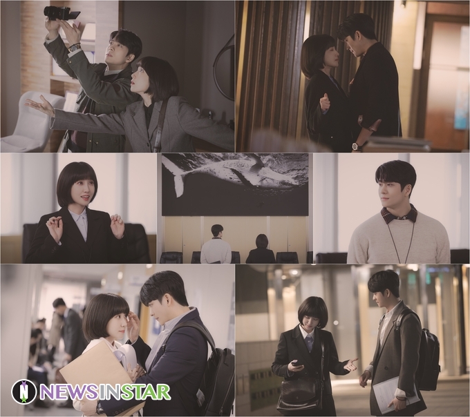 그런 가운데 ‘고래커플’의 미공개 스틸이 다시 한번 심장을 두근거리게 한다. 먼저 사건의 증거를 찾아 현장 조사에 나선 첫 번째 공조 현장이 눈길을 끈다. 이준호의 걸음에 맞춰 움직이는 우영우의 모습은 1회 회전문 신과 함께, 마치 ‘왈츠’를 추듯 아름다운 장면을 빚어내며 감탄을 자아냈다. 무엇보다 박은빈과 강태오의 눈부신 케미스트리가 빛을 발한 순간이었다. 대왕고래 사진을 바라보는 두 사람의 모습도 다시금 그때의 감동을 깨운다. 우영우의 가슴 벅찬 표정과 이준호의 따뜻한 눈빛은 어떤 수려한 대사보다 깊고 진한 울림을 선사했다.