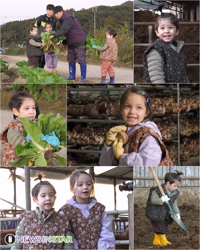 공개된 스틸 속 찐건나블리는 화려한 꽃무늬 조끼와 일바지를 입고 장화까지 장착하며 본격 농촌 체험에 나서 사랑스러움을 자아낸다. 이날 찐건나블리는 소에게 여물을 준 뒤, 소똥 치우기에 돌입한다. 나은은 콧노래를 흥얼거리며 ‘열심히 하니까 냄새가 하나도 안 나네”라며 뭐든 척척 잘해내는 ‘누나은’의 의젓함을 뽐냈고, 건후는 삽을 들고 아슬아슬하게 똥을 치워 아이들의 샤워를 담당하고 있는 아빠 박주호의 긴장감을 높였다는 후문. 그 중 아빠 박주호를 초 긴장시킨 장본인은 장난꾸러기 막내 진우. 진우는 놀이터에서 흙 놀이를 하는 것처럼 소똥을 손으로 덥석 잡고 공중에 흩날리며 농촌 체험을 만끽해 폭소를 유발할 예정이다. 찐건나블리는 각양각색의 방법으로 소똥을 치우면서도 아빠 박주호에게 “빨리 해 아빠”라고 독촉하는 모습으로 농촌에 완벽 적응했다고.