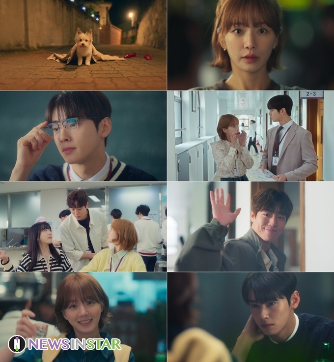 첫 방송을 앞두고 오늘 공개된 하이라이트 영상은 특별한 저주를 둘러싼 얽히고설킨 인물들의 관계가 흥미진진하게 담겼다. 이성과 키스하면 개로 변하는 저주에 걸린 한해나(박규영 분)와 그 저주를 풀 수 있는 유일한 치트키이지만 개를 무서워하는 진서원(차은우 분)의 서사가 모두의 가슴을 간질거리게 했다.