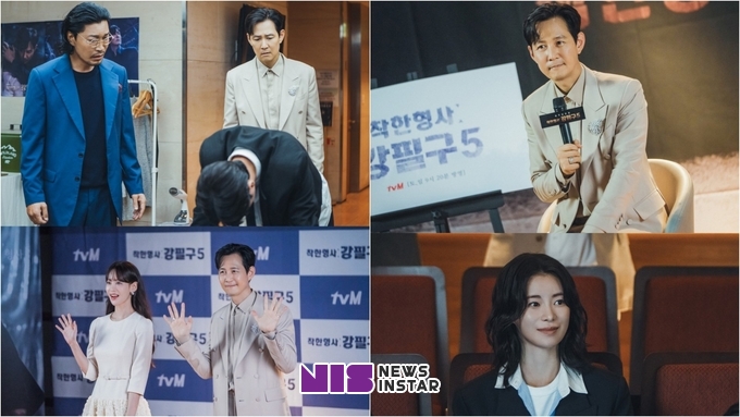 이어진 사진 속 무대에 오른 임현준은 프로 배우 그 자체다. 전 연인 권세나와의 다정한 커플 포토타임부터, 진지한 자세로 질문을 경청하는 임현준의 모습은 새로운 이야기, 새로운 캐릭터와 함께 돌아온 ‘착한형사 강필구 시즌 5’에 대한 기대감을 증폭시킨다. 그런가 하면 기자석에 자리한 위정신은 최애 작품의 제작발표회까지 참석한 ‘성공한 덕후’의 뿌듯한 미소를 감추지 못하는 모습이다. 과연 이날의 제작발표회는 무사히 마무리하고 ‘착한형사 강필구’가 국민 드라마의 명성을 이어갈 수 있을 것인지 귀추가 주목된다.