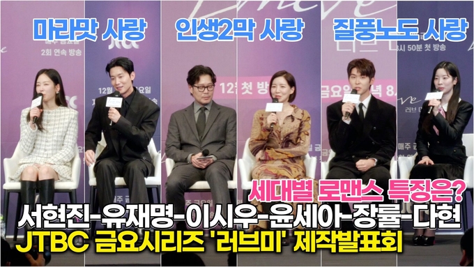 [뉴스인스타 양철수기자] 12월 18일(목) 오후, 서울시 구로구 신도림동 더링크서울 트리뷰트 포트폴리오 호텔에서 JTBC 새 금요시리즈 '러브 미' 제작발표회가 열려 배우 서현진, 유재명, 이시우, 윤세아, 장률, 다현이 참석해 공통 인터뷰를 진행하고 있다.