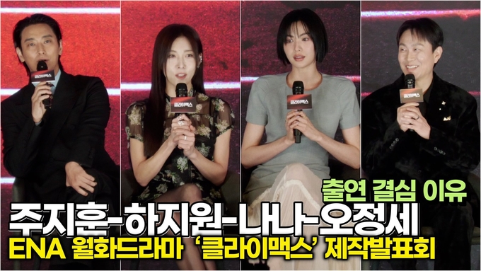 [뉴스인스타 양철수기자] 3월 10일(화) 오후, 서울시 구로구 신도림동 더 세인트에서 ENA 새 월화드라마 ‘클라이맥스’ 제작발표회가 열려 배우 주지훈, 하지원, 나나, 차주영, 오정세가 참석해 공통 인터뷰를 진행하고 있다.