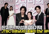 [스타 영상] 한지민-박성훈-이기택, 설렘 지수 높이는 다정한 삼각 하트 (JTBC '미혼남녀의 효율적 만남' 제작발표회)