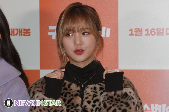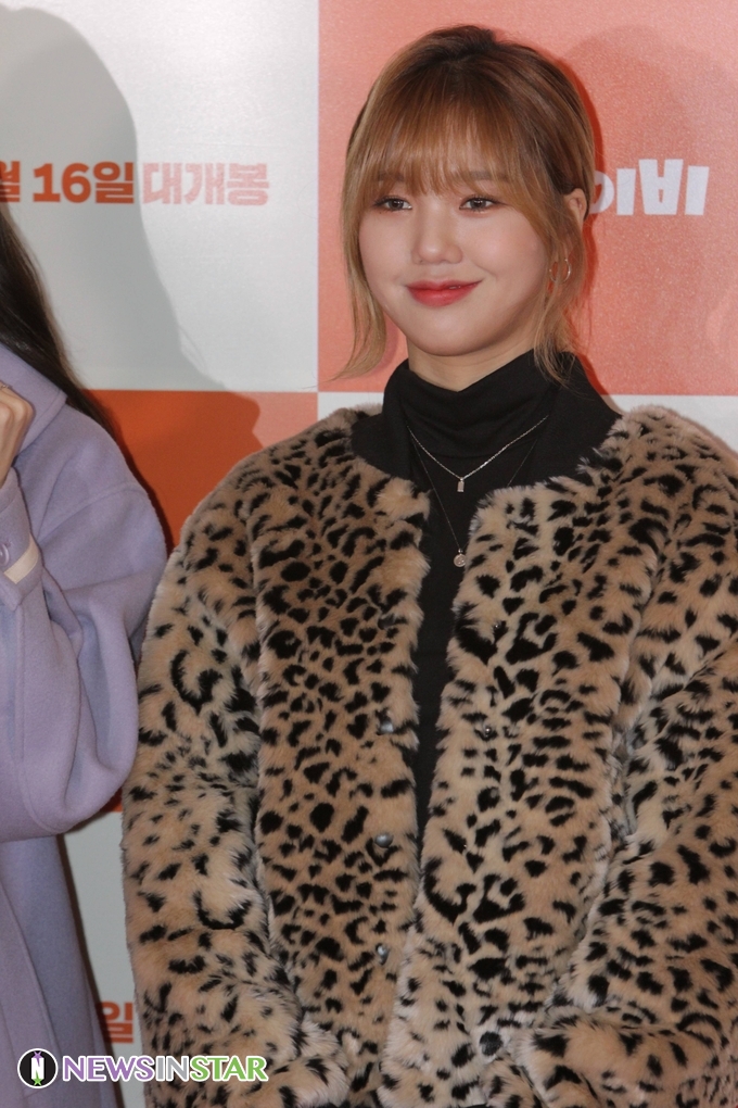 2일 오후 서울시 광진구 자양동 롯데시네마 건대입구에서 영화 ‘구스 베이비’ VIP시사회가 열려 오마이걸 미미가 참석해 포토월에서 포즈를 취하고 있다.