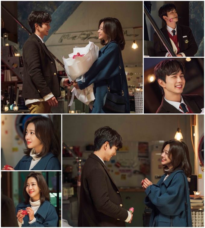 유승호와 조보아의 ‘반지 고백 이벤트’ 장면은 경기도 파주시 한 세트장에서 촬영됐다. 이날 촬영장은 로맨틱한 이벤트의 분위기를 고조시키기 위한 아기자기한 소품들로 꾸며진 상태. 촬영장에 도착한 유승호와 조보아는 세트장 곳곳을 둘러보며 감탄사를 터트리는가 하면, 소품으로 등장한 장미꽃 향을 맡아보며 실제 같은 설렘을 드러내 현장의 분위기를 돋웠다. 이어 리허설에 돌입하자, 두 사람은 서로를 바라보는 꿀이 떨어지는 복수와 수정의 눈빛으로 변신, 순식간에 달달한 분위기를 조성하며 역대급 ‘심쿵 장면’을 완성해냈다.