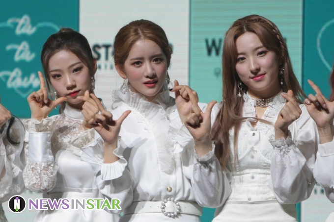 8일 오후 서울 광진구 광장동 예스24라이브홀에서 그룹 우주소녀(WJSN) 새 미니앨범 ‘WJ STAY(우주스테이)?’ 발매기념 쇼케이스가 열려 우주소녀 여름, 엑시, 은서가 포토타임에 포즈를 취하고 있다.