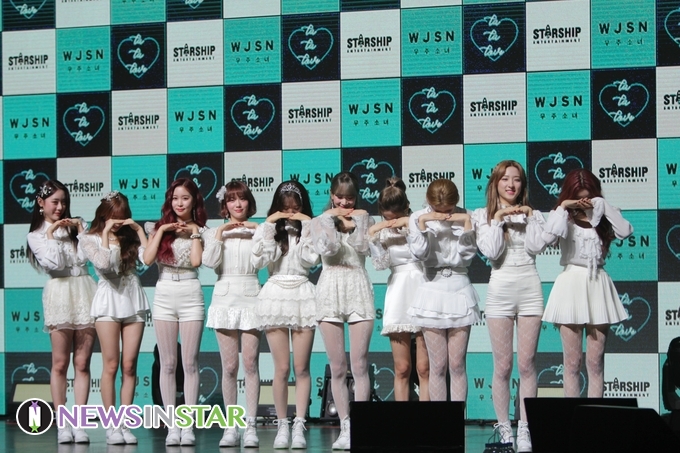 8일 오후 서울 광진구 광장동 예스24라이브홀에서 그룹 우주소녀(WJSN) 새 미니앨범 ‘WJ STAY(우주스테이)?’ 발매기념 쇼케이스가 열려 우주소녀가 포토타임에 포즈를 취하고 있다.