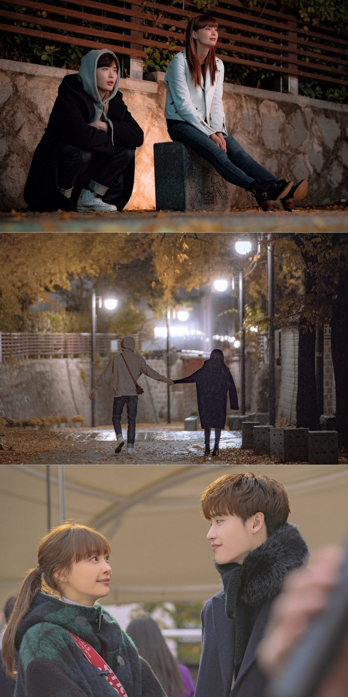 담벼락 아래 나란히 앉은 강단이와 차은호. 말없이 같은 곳을 바라보는 두 사람 사이에 흐르는 편안한 공기가 이들의 관계성을 고스란히 전달한다. 이어진 사진 속 손을 잡고 걸어가는 두 사람의 그림 같은 뒷모습은 바라만 봐도 심장 간질간질한 설렘을 유발한다. 함께 하기에 환하게 웃을 수 있는 두 사람. 옅은 미소와 서로를 바라보는 ‘심멎’ 눈맞춤이 설렘을 더욱 증폭한다. 서로를 향한 다정한 눈빛은 여전하지만 미묘하게 달라진 설렘 기류가 강단이와 차은호에게 열릴 새로운 로맨틱 챕터를 기대하게 만든다.