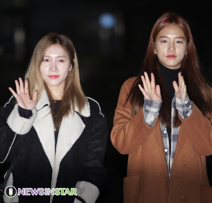 [포토인스타] 라붐 소연-솔빈, "아직 졸려요~" 잠이 덜 깬 모습으로 손인사 (KBS 뮤직뱅크 출근길)