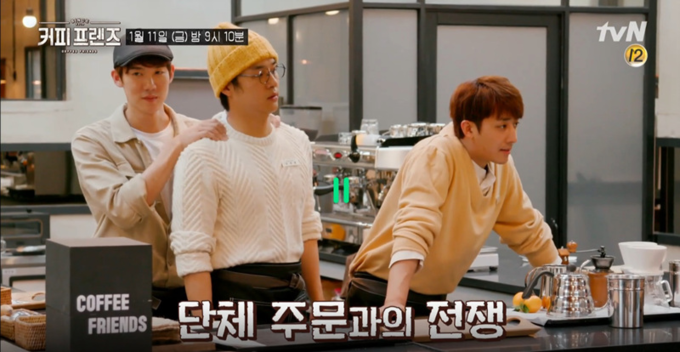 오늘(11일, 금) 방송하는 tvN '커피 프렌즈' 2회에서는 혼란에 빠진 멤버들의 고군분투가 예고돼 흥미진진, 아슬한 분위기를 자아내고 있다.