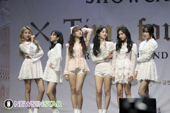 14일 오후 서울시 광진구 광장동 '예스24 라이브홀'에서 두번째 정규앨범 'Time for us(타임 포 어스)' 발매 쇼케이스가 열려 여자친구가 포토타임에 포즈를 취하고 있다.
