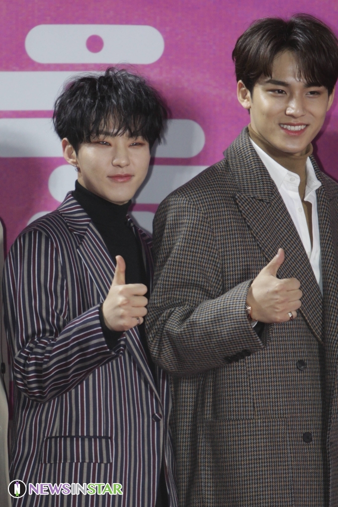 15일 오후 서울시 구로구 고척동 고척스카이돔에서 '제28회 하이원 서울가요대상' 시상식에 앞서 레드카펫 행사가 열려 세븐틴 호시, 민규가 참석해 포토월에서 포즈를 취하고 있다.