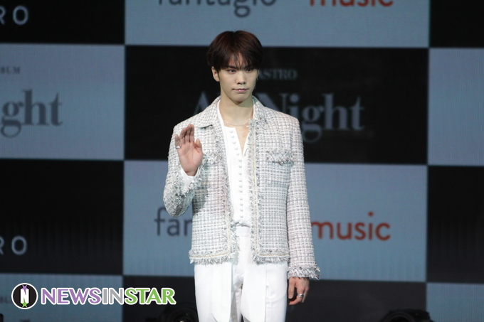 16일 오후 서울시 강남구 삼성동 코엑스 아티움에서 '아스트로(ASTRO)' 첫번째 정규 앨범 ‘올라잇(All Night)’ 발매 쇼케이스가 열려  라키가 포토타임에 포즈를 취하고 있다.