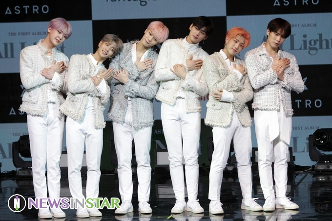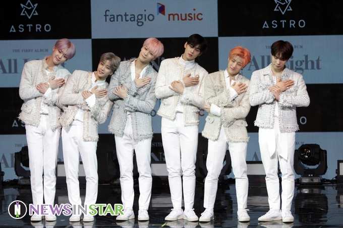 16일 오후 서울시 강남구 삼성동 코엑스 아티움에서 '아스트로(ASTRO)' 첫번째 정규 앨범 ‘올라잇(All Night)’ 발매 쇼케이스가 열려 아스트로가 포토타임에 포즈를 취하고 있다.