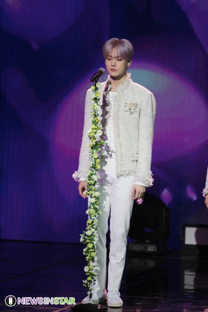 16일 오후 서울시 강남구 삼성동 코엑스 아티움에서 '아스트로(ASTRO)' 첫번째 정규 앨범 ‘올라잇(All Night)’ 발매 쇼케이스에서 윤산하가 무대를 선보이고 있다.