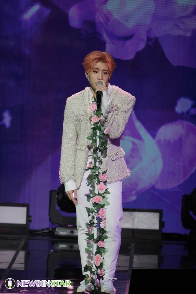 16일 오후 서울시 강남구 삼성동 코엑스 아티움에서 '아스트로(ASTRO)' 첫번째 정규 앨범 ‘올라잇(All Night)’ 발매 쇼케이스에서 진진이 무대를 선보이고 있다.
