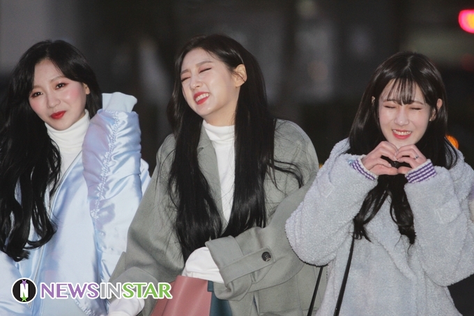 [포토인스타] 러블리즈 류수정-정예인-유지애, 폭소만발 예인X지애 (KBS 뮤직뱅크 출근길)