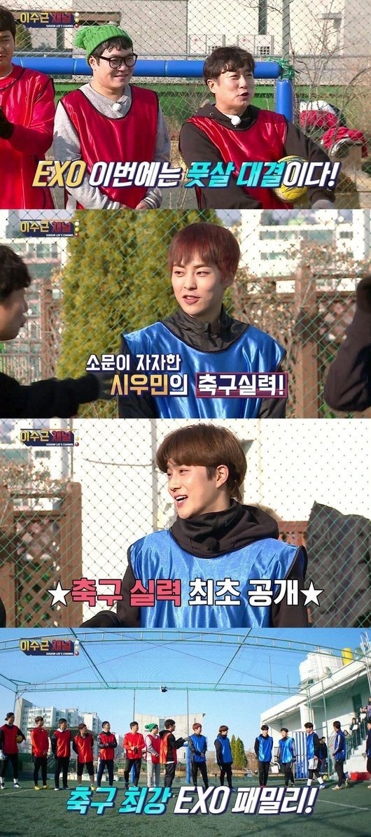 ‘이수근 채널’ 풋살편에 출연한 시우민은 알려진 대로 축구 매니아답게 남다른 실력을 뽐냈으며, 축구 실력이 좀처럼 알려지지 않았던 수호마저 모두의 예상을 뒤집고 엄청난 활약을 선보일 것을 예고해 기대를 모으고 있다.
