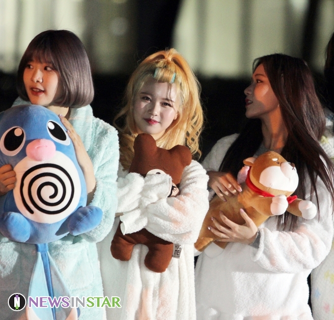 [포토인스타] 네이처 '선샤인-가가-채빈', 인형을 품에 안고 (KBS 뮤직뱅크 출근길)