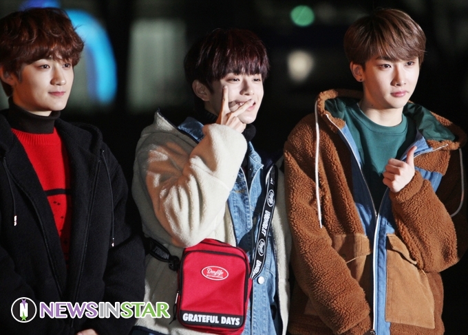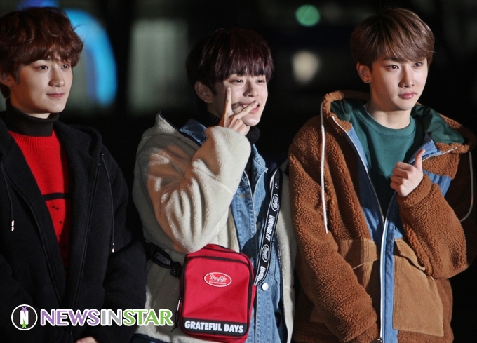 [포토인스타] 베리베리 용승-강민-호영, "생일축하해~" 축하받는 강민 (KBS 뮤직뱅크 출근길)