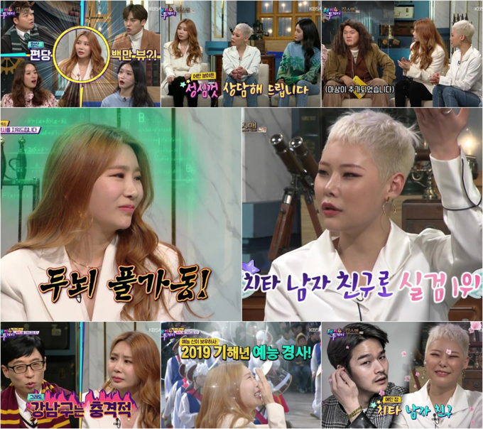 그런가 하면 제아가 뜻밖의 허당기 있는 모습으로 웃음을 폭발시켰다. 제아는 과거 방송에서 광역시를 묻는 질문에 ‘강남구’라고 답해 흑역사를 생성한 바 있다. 이에 제아는 “잠시 헷갈렸을 뿐이다”라고 주장했고 현장에서는 이미지 쇄신을 위한 상식 퀴즈 타임이 벌어졌다. 하지만 2019년을 육십갑자로 묻는 질문에 제아는 개年이라고 대답해 초토화를 만들었다. 이에 조세호는 “해투 최초다. 흑역사 하나를 지우고 5개가 생성됐다”고 말해 시청자들을 배꼽 잡게 만들었다.