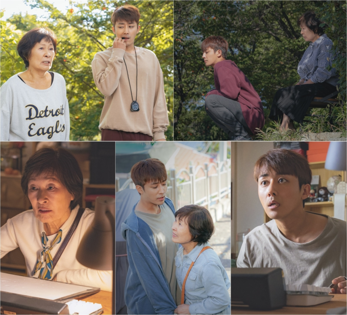 공개된 사진 속 김혜자와 손호준은 특별해도 너무 특별한 남매 케미로 웃음 시너지를 선사한다. 영수가 손자라고 해도 믿을 법한 언발란스 비주얼이지만 속은 부정할 수 없는 친남매. 현실 남매처럼 티격태격하며 서로를 하찮게 바라보다가도, 힘든 혜자에게 등을 내어주는 오빠美를 발산하는 다정한 영수(손호준 분)의 모습이 훈훈함을 자아낸다. 한순간에 70대로 늙어 버린 스물다섯 청춘 혜자. 몸은 뜻대로 움직이지 않지만, 생기 넘치는 눈빛과 사랑스러운 표정만큼은 여전하다. 머리부터 발끝까지 모태 백수 ‘영수’에 완벽 빙의한 손호준의 코믹한 존재감도 웃음을 유발한다. 세월마저 초월하는 김혜자와 손호준이 그려낼 이제껏 본 적 없는 현실 남매 케미를 기대하게 한다.