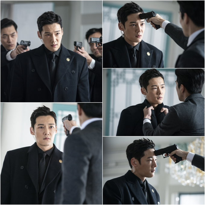 이와 관련 최진혁의 이마 가운데에 총구가 드리워진, 일촉즉발 ‘이마 총구 대면컷’이 포착돼 시청자들의 간담을 서늘하게 만들고 있다. 극중 천우빈이 황제와 일 대 일로 마주선 채 총으로 조준을 당하고 있는 장면. 앞서 황후가 쓰러졌다는 소식에 미친 듯이 내달려 황후전에 들어온 천우빈은 혼자 있는 이혁을 보고 당혹스러워했고, 갑작스럽게 경호대원들의 총구에 둘러싸였다. 이어 언제부터 배신한 거냐는 이혁의 포효와 함께 이혁을 바라보는 천우빈의 모습이 긴장감을 폭등시켰다.