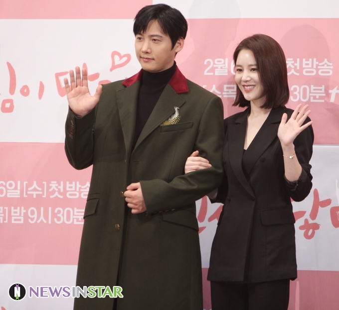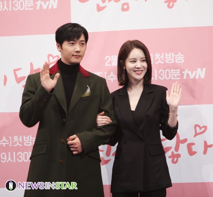 29일 오후 서울 강남구 논현동 임피리얼팰리스서울에서 열린 tvN 수목 드라마 `진심이 닿다` 제작발표회에 참석해 배우 이상우, 손성윤이 포즈를 취하고 있다.