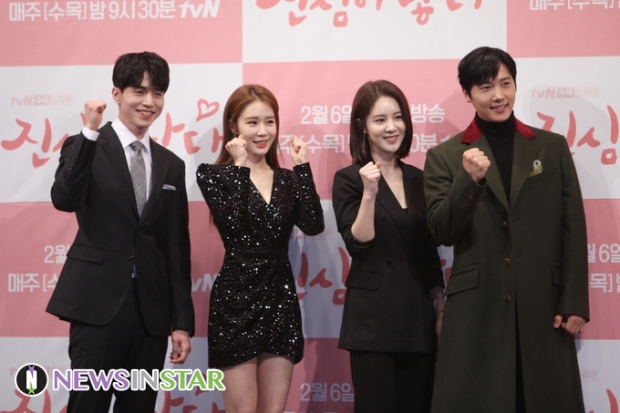 29일 오후 서울 강남구 논현동 임피리얼팰리스서울에서 열린 tvN 수목 드라마 `진심이 닿다` 제작발표회에 참석해 출연진들이 포즈를 취하고 있다.
