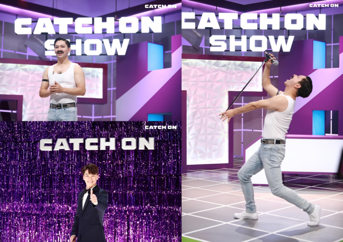 특히 첫 방송에서 MC 정상훈이 프레디 머큐리로 완벽 변신한 모습으로 더 큰 재미를 선사할 예정이다. 방송에 앞서 공개된 사진을 살펴보면 정상훈은 프레디 머큐리가 1985년 ‘라이브 에이드’ 무대에 올랐을 당시 의상인 청바지와 하얀색 민소매 셔츠를 입고 팔뚝에는 팔찌를 차고 콧수염까지 재연하는 등 완벽한 싱크로율을 자랑한다. 마이크를 들고 노래를 하는 모습에서는 정상훈의 익살스러운 연기까지 더해져 웃음을 자아낸다. 이어 첫방송 기념 축하쇼로 ‘We Will Rock You’를 ‘캐치온쇼’ 첫방송에 맞춘 한글 가사로 개사해 재치를 더했다는 후문이다.