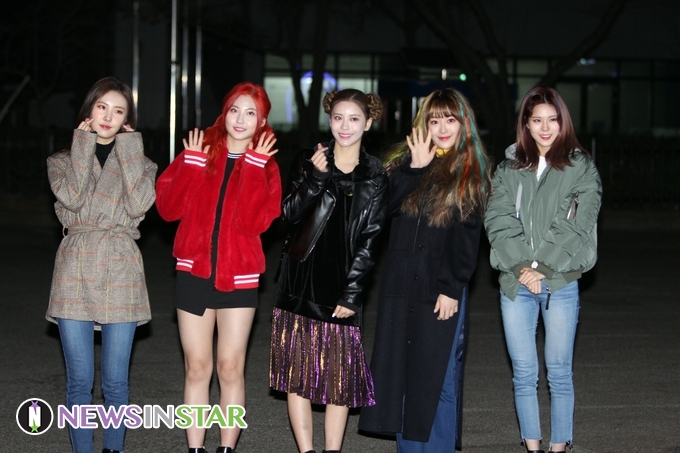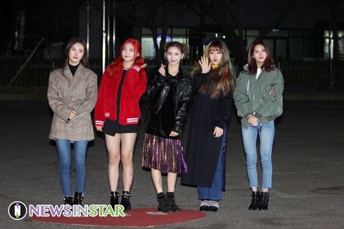 2월 1일 오전 서울시 영등포구 여의도 KBS 신관 공개홀에서 열린 '뮤직뱅크' 출근길에 네온사인이 참석해 포즈를 취하고 있다.