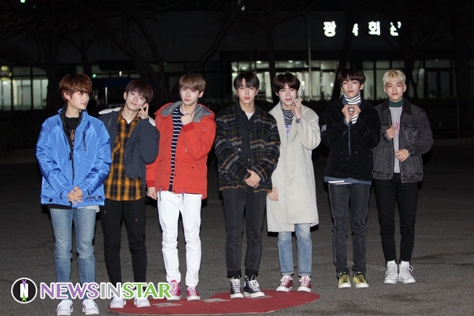2월 1일 오전 서울시 영등포구 여의도 KBS 신관 공개홀에서 열린 '뮤직뱅크' 출근길에 베리베리가 참석해 포즈를 취하고 있다.