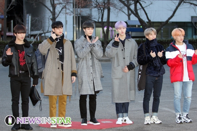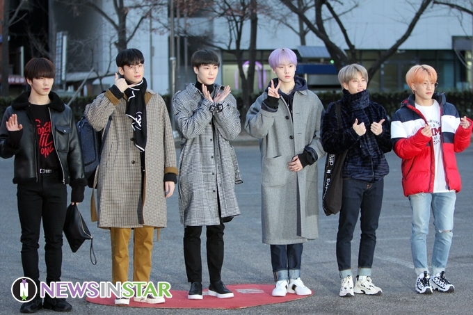 2월 1일 오전 서울시 영등포구 여의도 KBS 신관 공개홀에서 열린 '뮤직뱅크' 출근길에 아스트로가 참석해 포즈를 취하고 있다.
