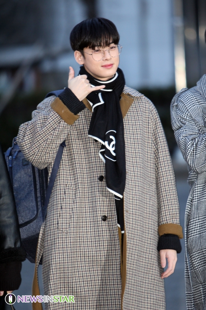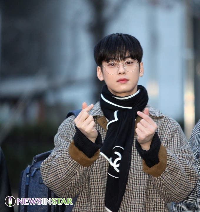 [포토인스타] 얼굴천재 차은우, 복고풍도 소화하는 '은우 매직' (KBS 뮤직뱅크 출근길)