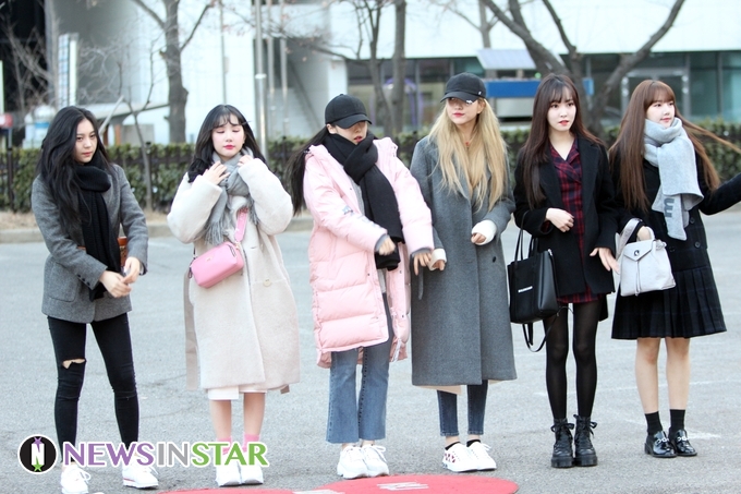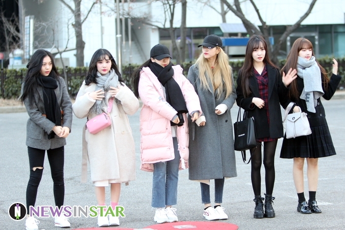 2월 1일 오전 서울시 영등포구 여의도 KBS 신관 공개홀에서 열린 '뮤직뱅크' 출근길에 여자친구가 참석해 포즈를 취하고 있다.