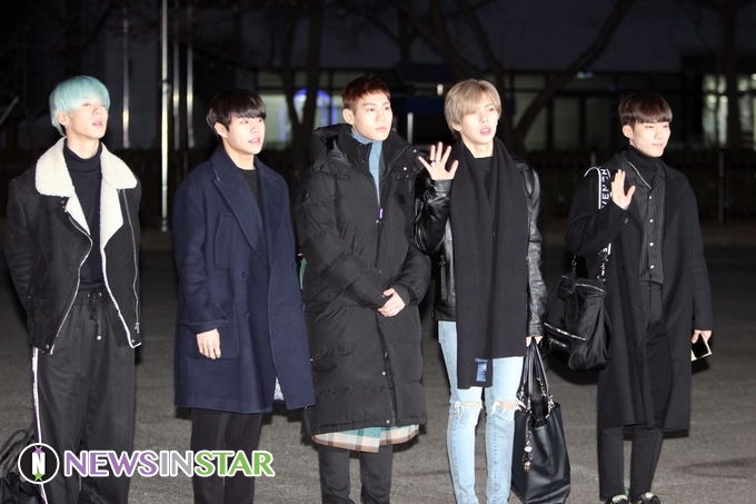2월 1일 오전 서울시 영등포구 여의도 KBS 신관 공개홀에서 열린 '뮤직뱅크' 출근길에 임팩트가 참석해 포즈를 취하고 있다.