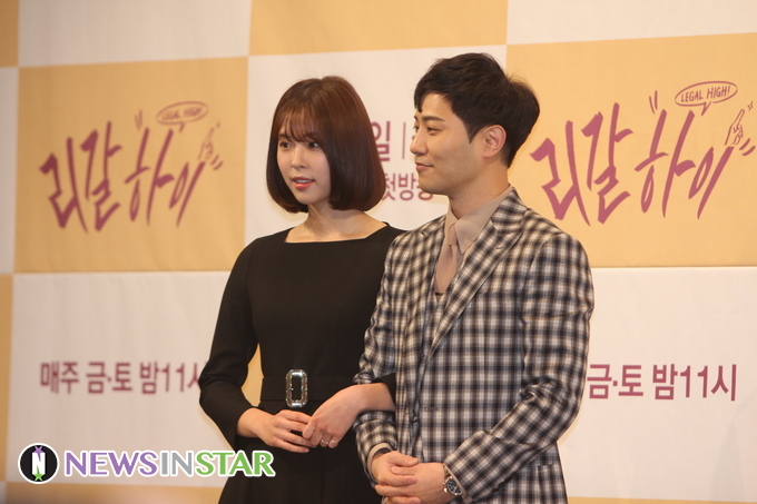 7일 오후, 서울시 강남구 논현동 임패리얼 팰리스 호텔에서 JTBC 새 금토드라마 '리갈하이'의 제작발표회가 열려 배우 서은수,진구가 참석해 포토타임을 갖고 있다.