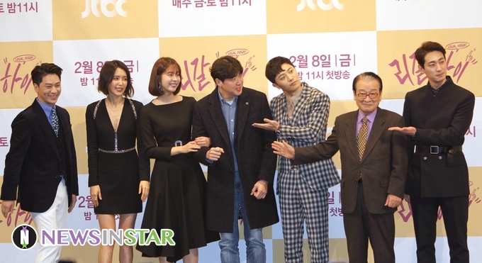 7일 오후, 서울시 강남구 논현동 임패리얼 팰리스 호텔에서 JTBC 새 금토드라마 '리갈하이'의 제작발표회가 열려 배우 정상훈, 채정안, 서은수, 진구, 이순재, 윤박이 참석해 포토타임을 갖고 있다.