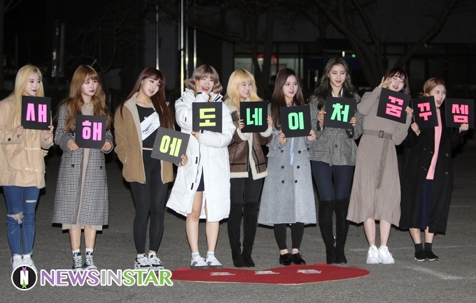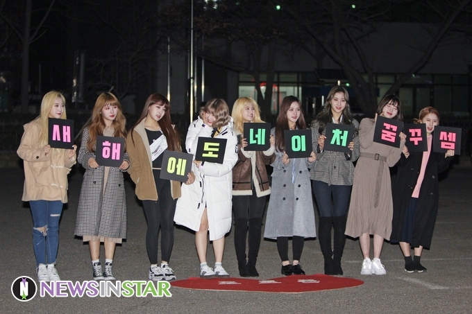 2월 8일 오전 서울시 영등포구 여의도 KBS 신관 공개홀에서 열린 '뮤직뱅크' 출근길에 네이처가 참석해 포즈를 취하고 있다.