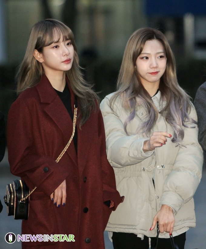 2월 8일 오전 서울시 영등포구 여의도 KBS 신관 공개홀에서 열린 '뮤직뱅크' 출근길에 우주소녀가 참석해 포즈를 취하고 있다.