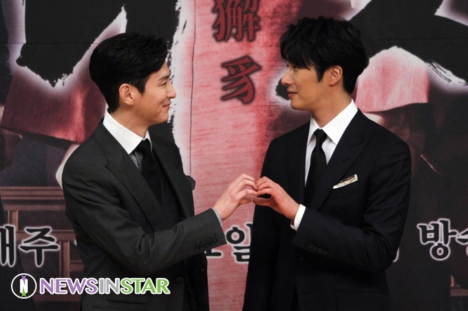 11일 오전 서울 양천구 목동 SBS 사옥에서 SBS 새 월화드라마 '해치' 제작발표회가 열려 권율, 정일우가 참석해 포즈를 취하고 있다.