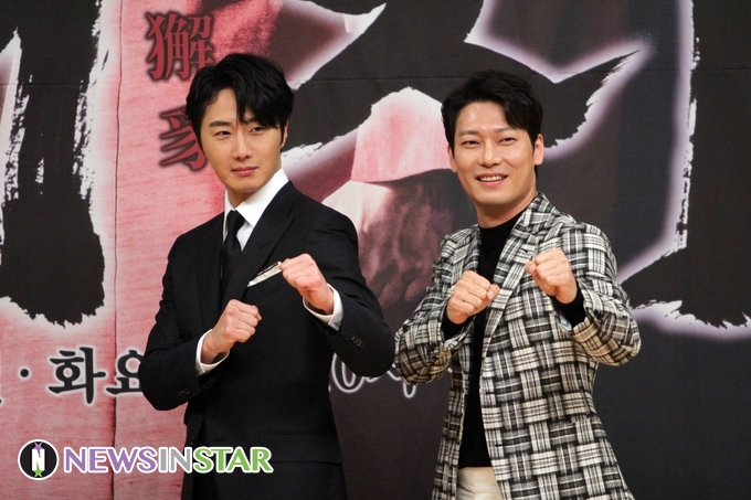 11일 오전 서울 양천구 목동 SBS 사옥에서 SBS 새 월화드라마 '해치' 제작발표회가 열려 박훈, 정일우가 참석해 포즈를 취하고 있다.