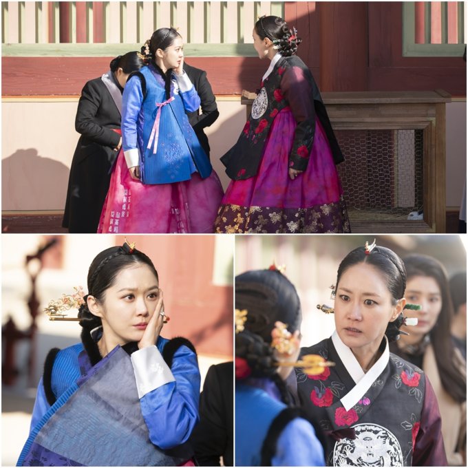 장나라와 신은경의 ‘서슬 퍼런 따귀 한판’ 장면은 충청남도 부여에서 촬영이 이뤄졌다. 현장에 도착해 인사를 나눈 장나라와 신은경은 친밀하게 담소를 나누며 한겨울 추위도 불식시키는 돈독한 선후배간의 모습으로 화기애애함을 돋웠던 상태. 하지만 두 사람은 리허설을 준비하기 위해 각자의 위치를 잡으면서, 황후 오써니와 태후 강씨 캐릭터에 바로 몰입, 눈빛부터 180도 달라지며 현장을 숨죽이게 만들었다.