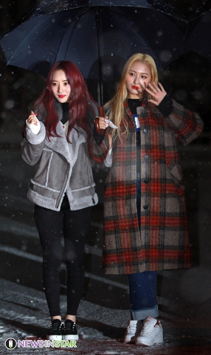 [포토인스타] 드림캐쳐 수아-시연, 흰 눈 조명으로 미모 버프! (KBS 뮤직뱅크 출근길)
